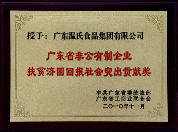 广东省非公有制企业扶贫济困回报社会孝顺奖